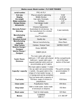 Marine vessel. Model number : FLY GEZİ TEKNESİ